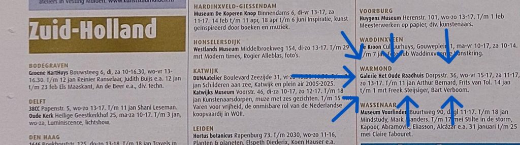 De expositie in galerie Het Raadhuis te Warmond is vanwege persoonlijke omstandigheden geannuleerd. De vermelding in de kunstkrant van januari /februari is derhalve onjuist. Excuses voor het ongemak.